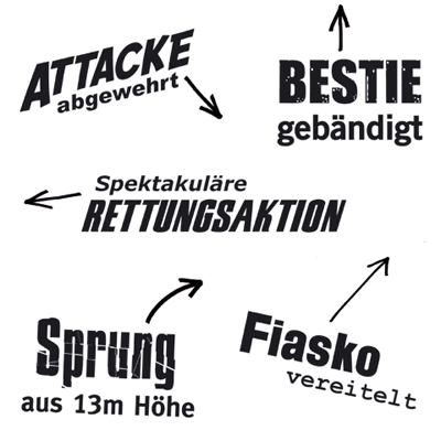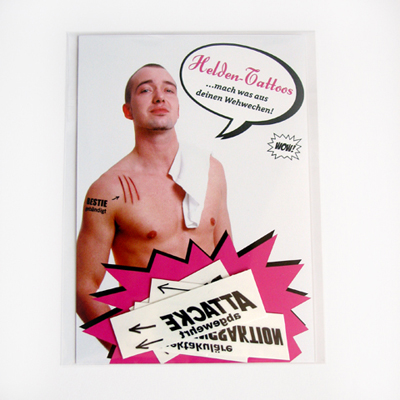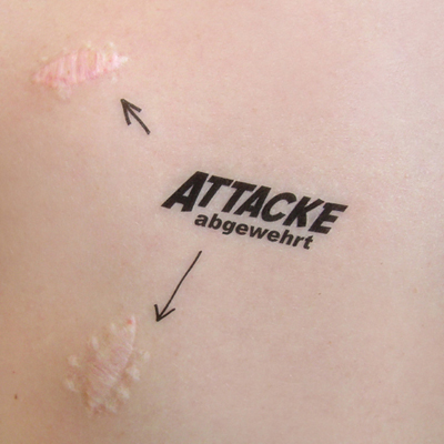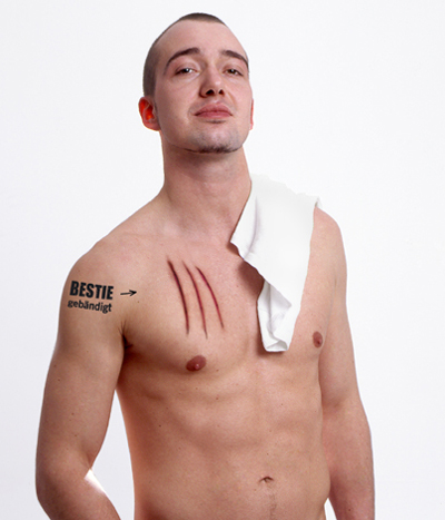 Table edge? That was a daredevil leap from 13m height! Stumbled? You repressed a wild beast! With the fabulous Tattoos for Heroes you can fit out your little aches and pains with thrilling stories and put yourself into the limelight.
