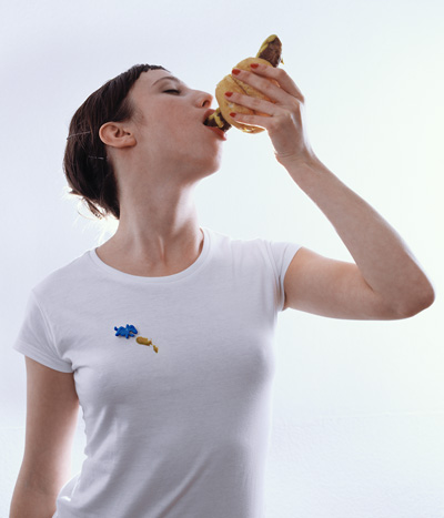 Lola, a messy eater, has somehow managed again to get a nasty stain on her shirt just before going out. But the fantastic kotztierchen' gives the stain a purpose by simply making it part of her outfit. Lucky her!