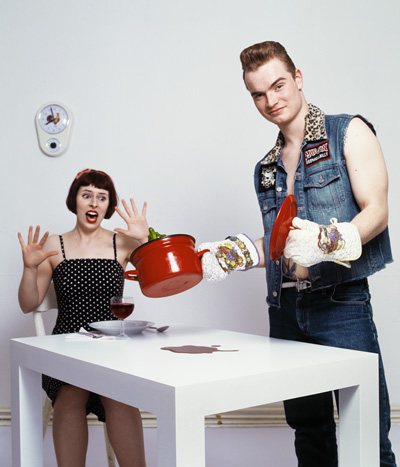 On their first date Jonny tries to impress his babe with one of his grandpa's secret recipes. Nothing can go wrong anyway because the heat-mat is permanently attached to the table; just in case things start heating up. Ready, steady, cook.